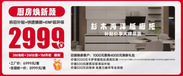 (2)专属礼遇:针对旧厨焕新客户,特别推出“1000元惠购4000元焕新礼包”,内含: