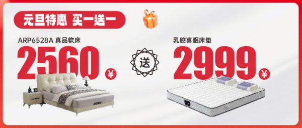 元旦期间,我们为您准备了一份“成双成对”的厚礼!仅需2560元,即可购得ARP6528A 真品软床,并免费赠送价值2999元的乳胶喜眠床垫!一张床的价格,带走两件精品。