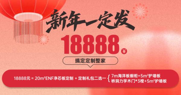 2026年,给家一个全新的定义!太子家居定制服务元旦特惠:仅需18888元,即可搞定【20m² ENF净芯板定制】+【定制礼包二选一】:礼包A:7m海洋板橱柜+ 5m² 护墙板;或礼包B:桥洞力学木门*3樘+ 5m² 护墙板。
