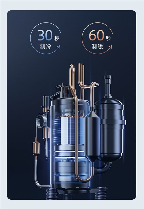 性能是品质的基石。“至风”搭载高效直流变频压缩机与双排冷凝器,配合100%优质亲水铝箔,实现30秒速冷、60秒速暖的疾速响应,即便面对极端天气亦能稳定输出强悍性能。五档风速随心调节,无论是居家休闲、深度睡眠还是亲朋聚会,开门即享量身定制般的理想温度,让舒适无需等待。